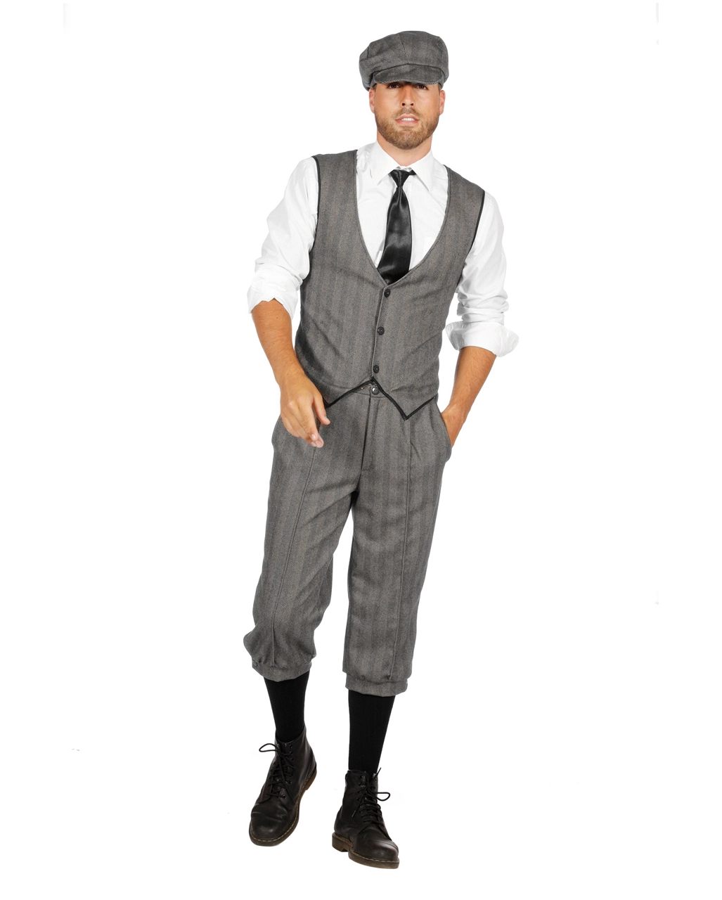 Das 20er Jahre Herrenkostüm Kostüm Finn ist die perfekte 20ies Verkleidung für Fasching und 20er Jahre Motto Party. Das 20s Herren Kostüm-Set besteht aus einer klassischen grauen Hose, einer stilechten Kostümweste und der typischen Schiebermütze. Unser 20ies Kostüm macht aus dir also einen Ganoven mit Charme und Format. Hemd, Krawatte, Socken & Schuhe sind nicht inkl. Wie wäre es also noch mit der Schwarze Krawatte mit weißen Punkten aus unserem Shop?