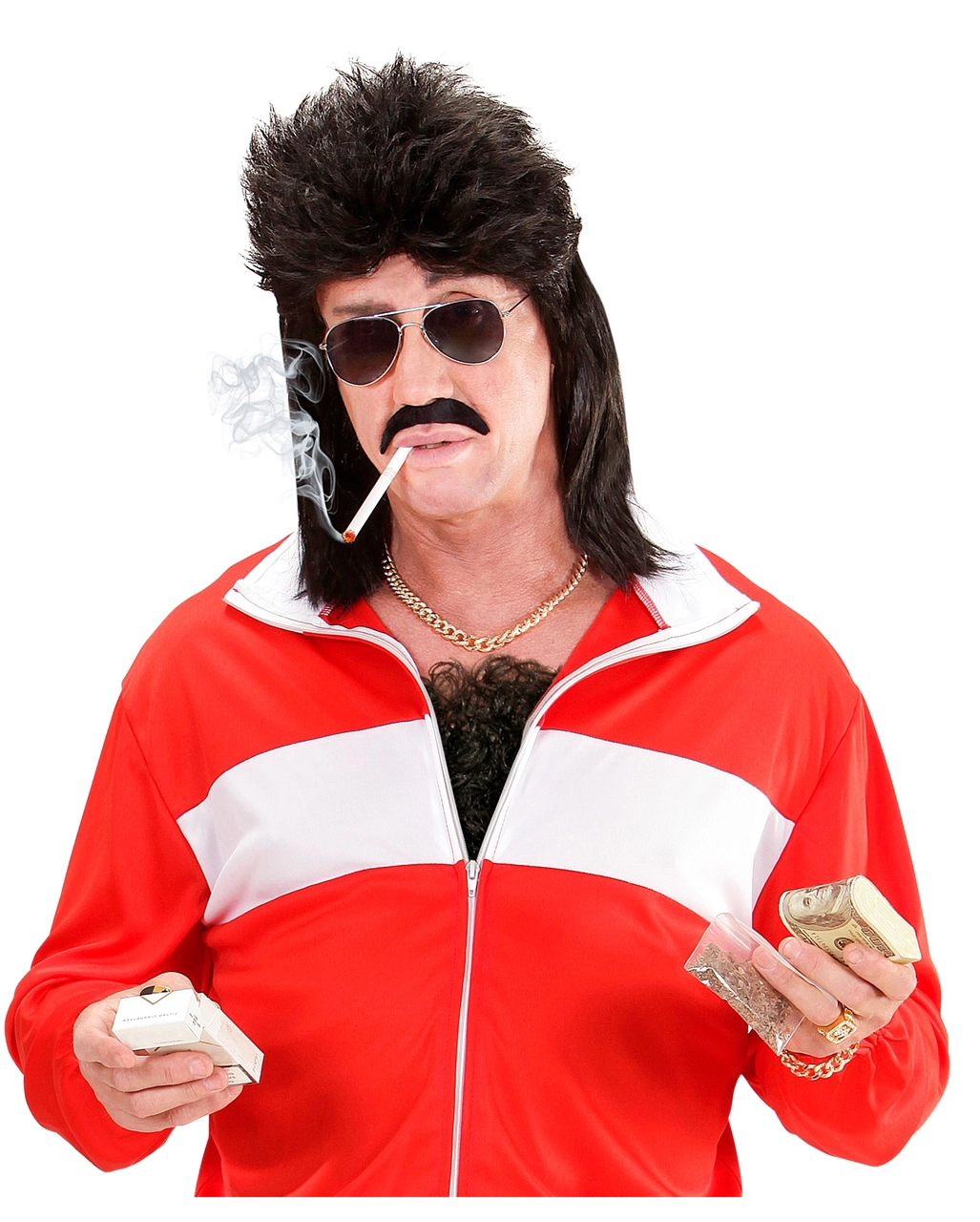 Schwarzes, lockiges, extremes Brusthaar für Kerle die immer schon mal die Damenwelt beeindrucken wollten. Die berühmtesten Sexsymbole wie Burt Reynolds, Sean Connery oder Tom Selleck waren immer mit üppiger Brustbehaarung ausgestattet, was die Potenz der Träger unterstreichen soll. Mit diesem Brusthaar-Toupet kannst auch Du wie ein Hollywoodstar, Casanova oder Zuhälter aussehen ohne mühsam deine eigene Körperbehaarung mit Dauerwelle aufzupeppen.