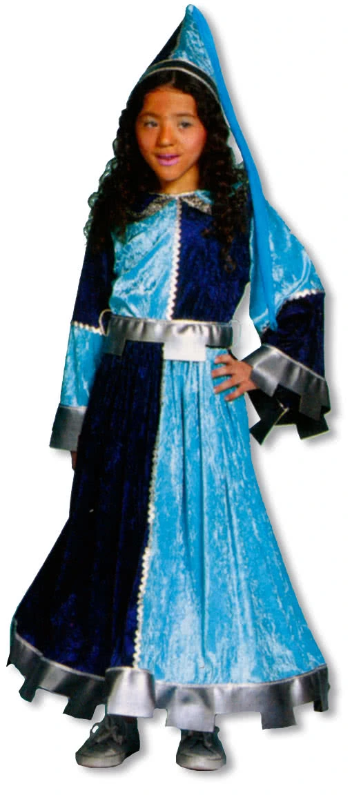 Burgfräulein Kinderkostüm mit Spitzhut in türkis und dunkelblau