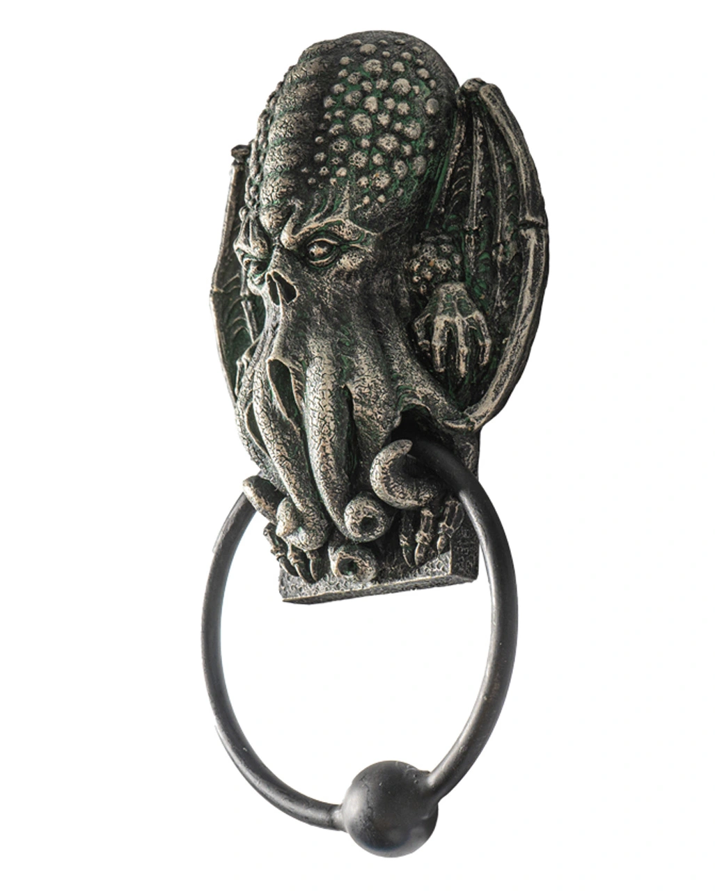 Der Cthulhu Türklopfer sorgt für ein schaurigen Flair an deiner Haustür. Das unheimliche Wesen Cthulhu ist den Geschichten des Schriftstellers H.P. Lovecraft entsprungen. Der Meister des Phantastischen hat mit Cthulhu ein mystisches Wesen erschaffen, das großen Einfluss auf viele Horror und Science-Fiction Autoren hat. Auch an der Haustüre sorgt das Kraken Monster für anhaltenden Grusel. Verwende es als Türklopfer, der deinen Gothic Stil ergänzt, oder verschenke es an einen Lovecraft Fan.