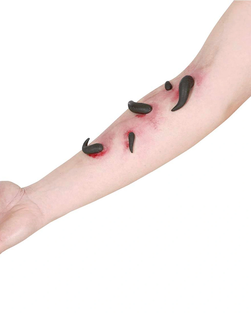 Besitze jetzt fünf unterschiedlich aussehenden Blutegel und zeige dich als Opfer eines Angriffs durch die fiesen Blutegel. Die fünf Blutegel lassen sich prima mit Hautkleber (Mastix) auf der Haut befestigen und immer wieder benutzen. Die gemeinen Insekten vielleicht zusätzlich noch mit ein wenig Blutgel (nicht inkl.) perfektionieren und ein schockierender Anblick ist garantiert!