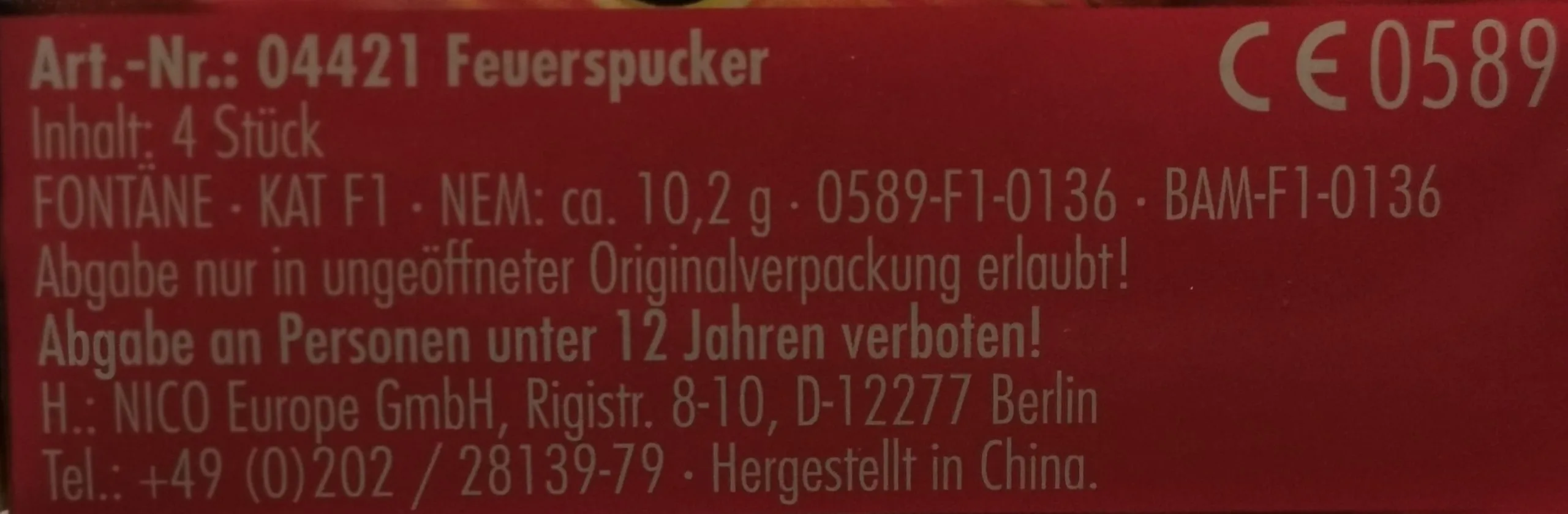 Das Feuerspucker Feuerwerk beinhalte 4 Mini-Vulkane und ist ganzjährig bestellbar. Jugendfrei ab einem Alter von 12 Jahren.