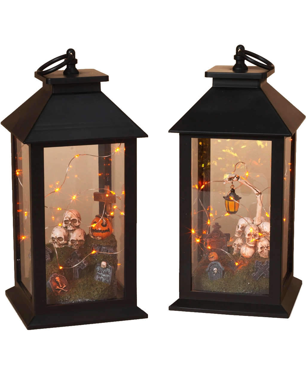 Lieferumfang: 1 x Halloween Laterne Friedhof Szenario beleuchtet