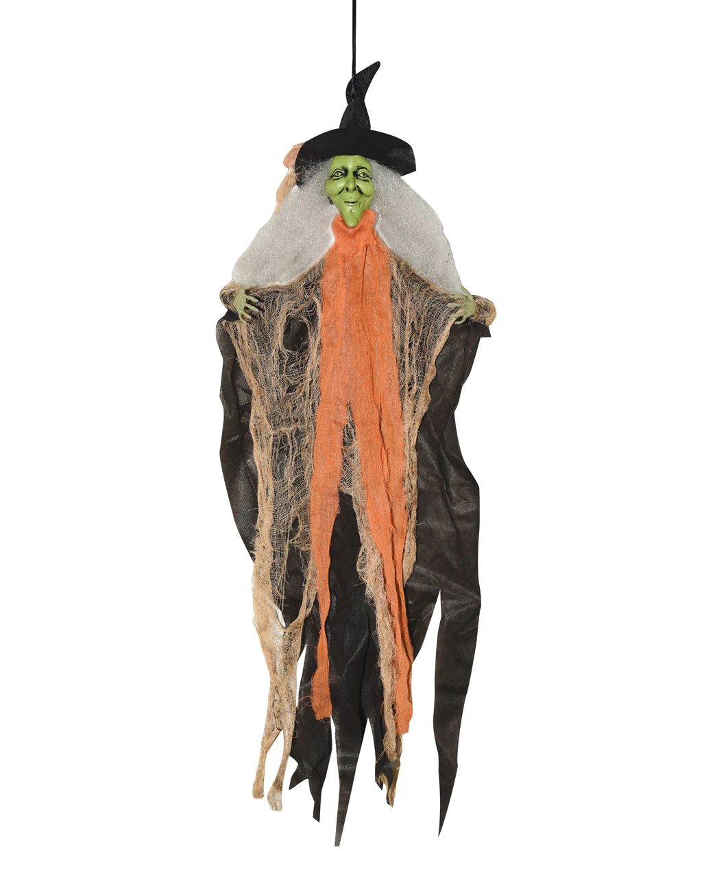 Bestelle jetzt eine der drei verschiedenartig gekleideten Hexen. Die klassische Märchenhexe als Hängefigur wird entweder mit einem giftig grünem Gesicht oder mit beigem Antlitz verschickt, während sich die Fetzenkleider in der Farbe zusätzlich unterscheiden können. Ganz gleich, um welche kombination es sich am Ende handelt, wir sind uns sicher, dass die Hexe mit biegsamen Armen & Fetzenkleid, bei dir zu Hause für Gruselstimmung sorgt.