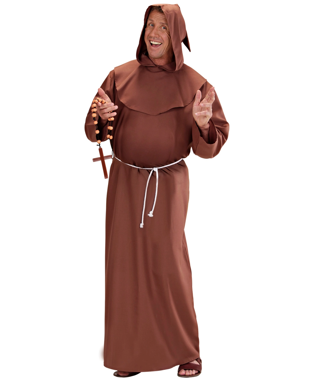 Braunes Mönchskostüm als Karnevalskostüm für alle trinkfesten Ordensbrüder und Schwestern. Unser Kapuziner Mönch Kostüm besteht aus einer braunen Mönchsrobe, einer Kapuze und einem weißen Strick, welcher deinen Mönchs-Look perfekt abrundet. Das passende Kostümzubehör zum Mönch ist das unentbehrliche Mönchs Kreuz Holzoptik und ein weißes Papst Premium Kostüm als Ordensvater.