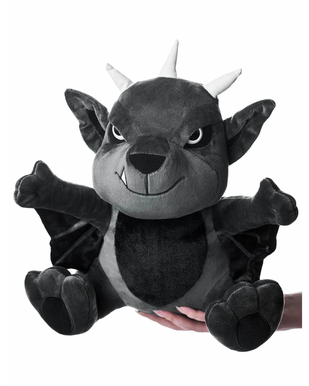 Der KILLSTAR Gate Keeper Figur aus Plüsch als Limited Edition ist ca. 30 cm groß und besteht aus 100% Polyester. Das kuschelige Vampir Horror Kuscheltier hat 3 weiße Hörner aus Kunstleder & Fledermaus Flügel. Hole dir jetzt das einzigartige Höllenfürst Geschenk und mache einem Gothic Fan eine riesen Freude oder dekoriere das Fledermaus Plüschtier an deiner Halloween Party. Wir haben auch noch den KILLSTAR Gloom Teufel aus Plüsch und die KILLSTAR Doom Teufel aus Plüsch für euch im Sortiment.