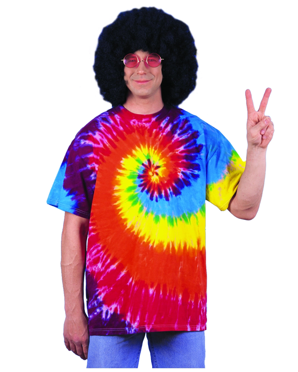 Mit dem Hippie Outfit fühlt geradezu den Zeitgeist der Blumenkinder und die Unbeschwertheit der damaligen Generation Love, Peace and Happienes. Das Rainbow Hippie Shirt ist one Size und passt Männern und Frauen mit der Größe ML. Kombiniere das schrille Hippie Shirt doch mit einem unserer Afroperücken und dem auffälligem Peace Zeichen als Schmuck und Woodstock kann kommen!