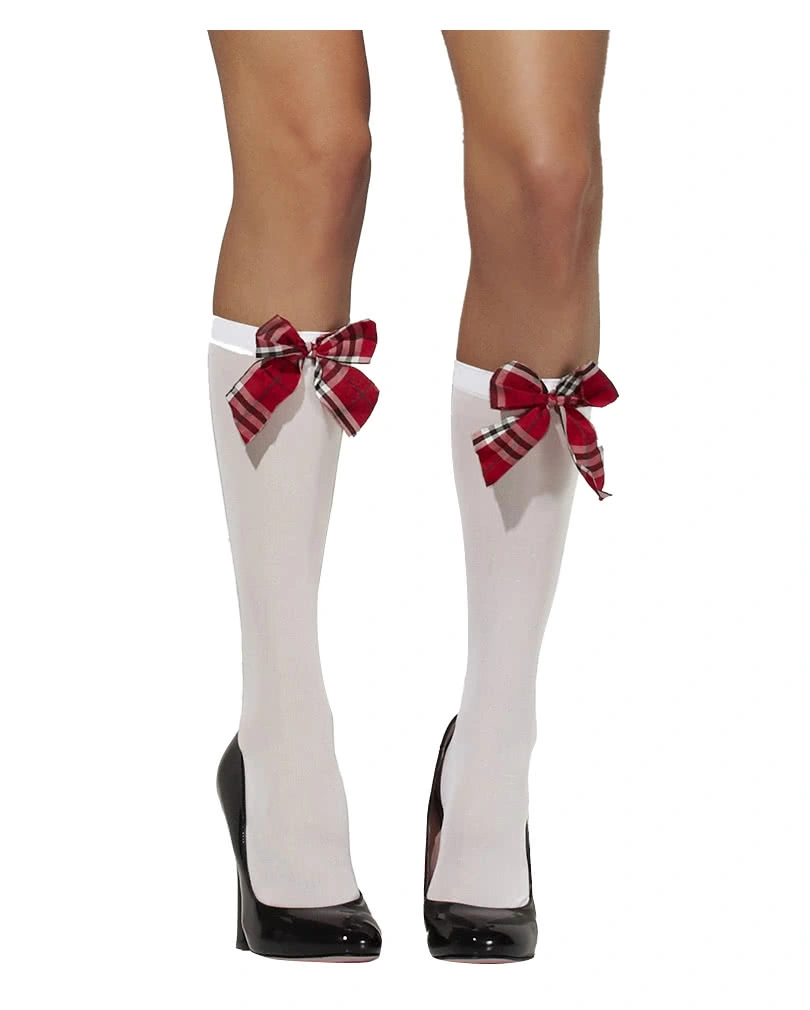 Die Schulmädchen Strümpfe weiß sind hübsche Kniestrümpfe mit karierter Schleife. Die weißen Nylonstrümpfe sind Einheitsgröße und sollten möglichst mit der Hand gewaschen werden. Dazu kannst du das Sexy Studentin Kostüm M oder das gruselige Gegenstück als Zombie Schoolgirl Kostüm kombinieren.