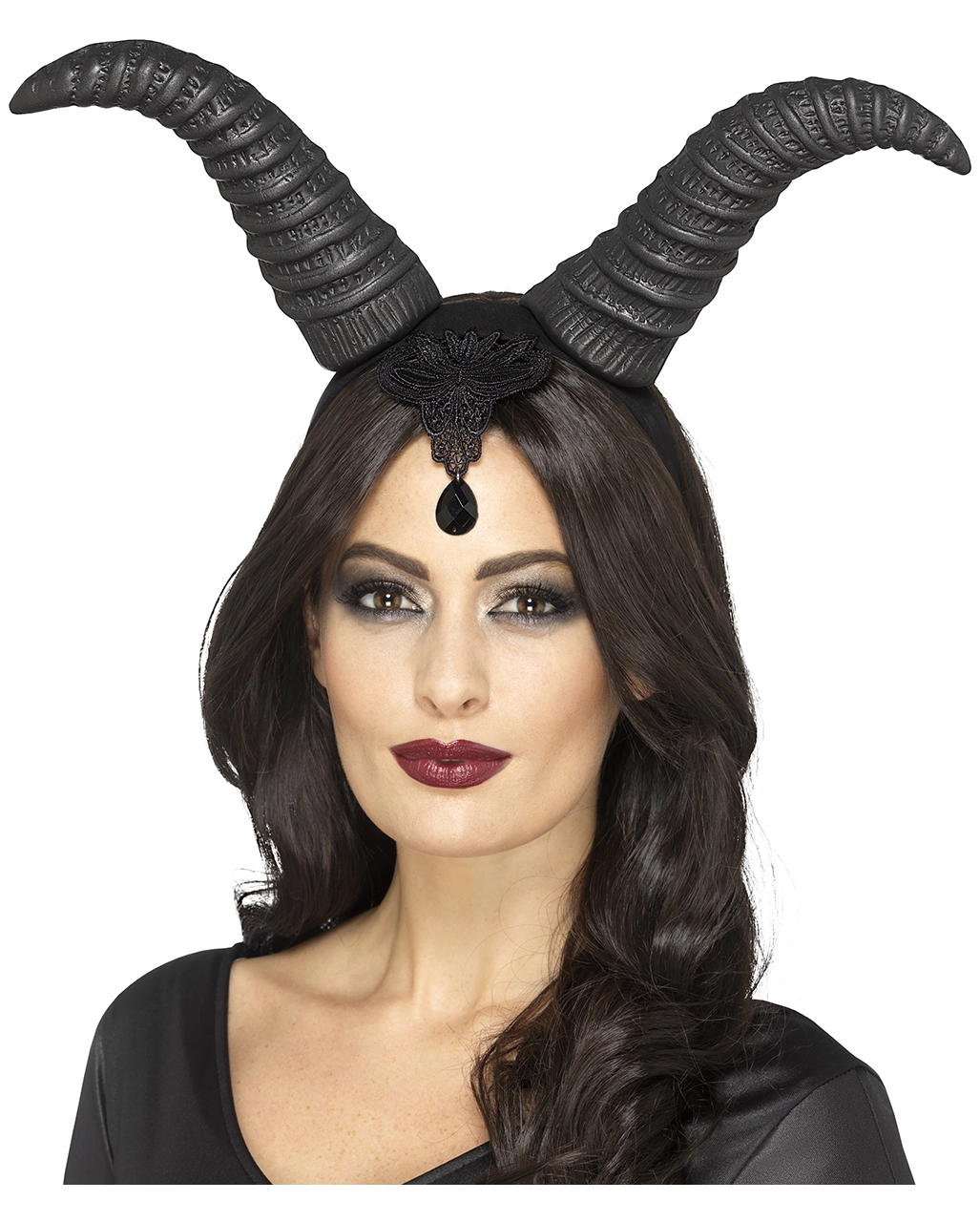 Schwarze Fee Hörner Haarreifen ist in Standard Damengröße verfügbar. Die Hörner sind ca 19 cm hoch und von hinten hohl. Ein Stirnlatz mit schwarzem Stein ist angeklebt und macht den Haarschmuck für Halloween zu einem eleganten Must-Have. Trage zum Halloween Haarreifen mit Hörnern die Spider Queen Perücke und werde zur schwarzen Fee.