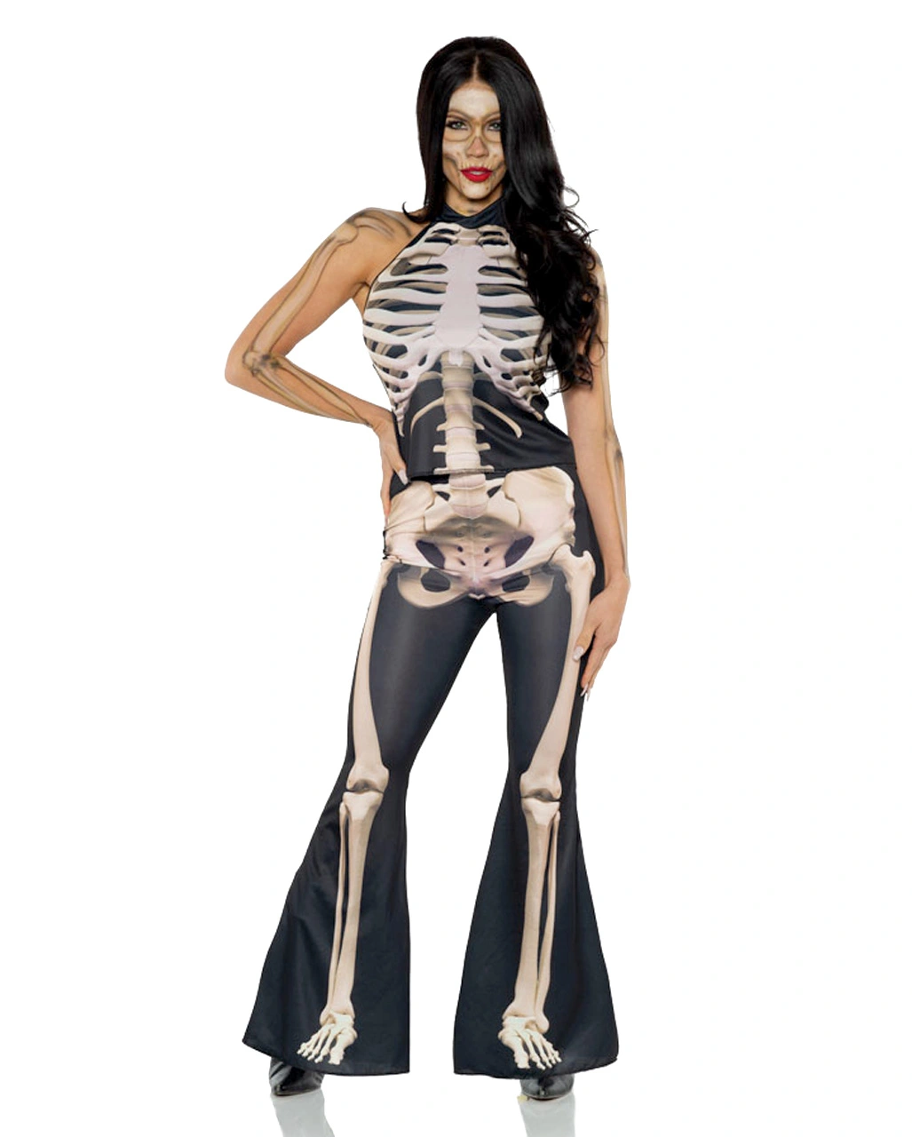 Skeleton Neckholder Top & Knochen Schlaghose als Halloween Kostüm