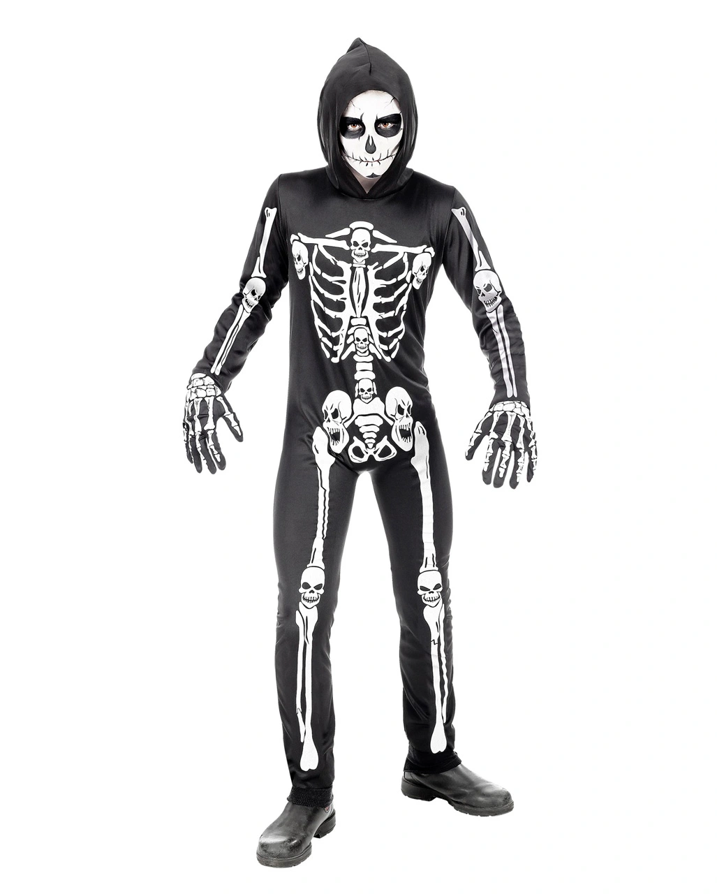Klassische Halloween Verkleidung mit Knochengerippe als Motiv