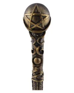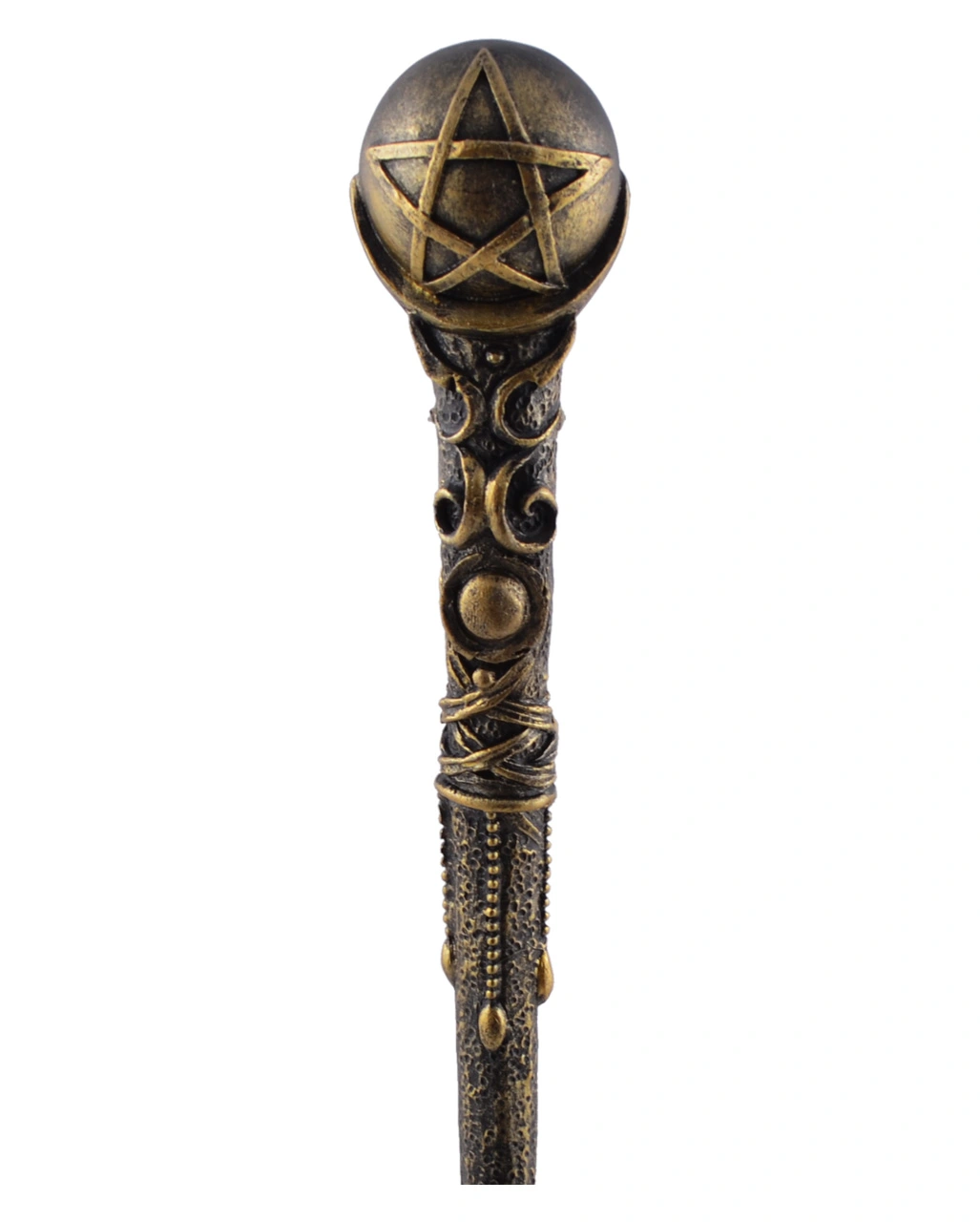Bestelle dir mit unserem Spellbound Zauberstab mit Pentagrammkugel ein hochwertiges Kostümaccessoire als Requisite für Cosplay und Theater! Der wunderschön designte Zauberstab mit goldenem Orb sorgt mit Sicherheit für Aufsehen und eignet sich auch wunderbar als Geschenkartikel für Fantasy Fans!