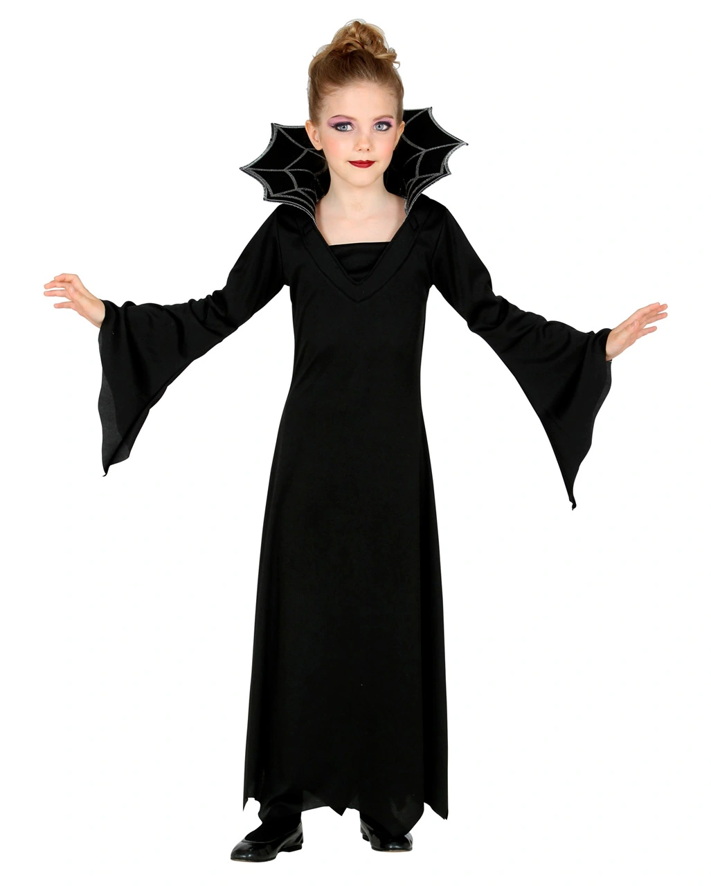 Das Spiderella Prinzessin Kinderkostüm ist ein echter Hingucker. Das lange Halloween Kostüm mit Trompetenärmeln und Stehkragen verleiht dir die unheimlicher Aura der Herrscherin über die Spinnen. Du hast die Weberknechte in eurem Keller dressiert und die Kreuzspinnen im Garten tanzen Tango, wenn du das willst. Begeistere deine Freundinnen und Freunde an Halloween und Fasching als eine ganz besondere Hexe, die den Erwachsenen das Fürchten lehrt. Niemand kann dem düster-eleganten Look einer Spinnenprinzessin widerstehen, geschweige denn, ihr widersprechen, wenn sie Süßigkeiten verlangt.