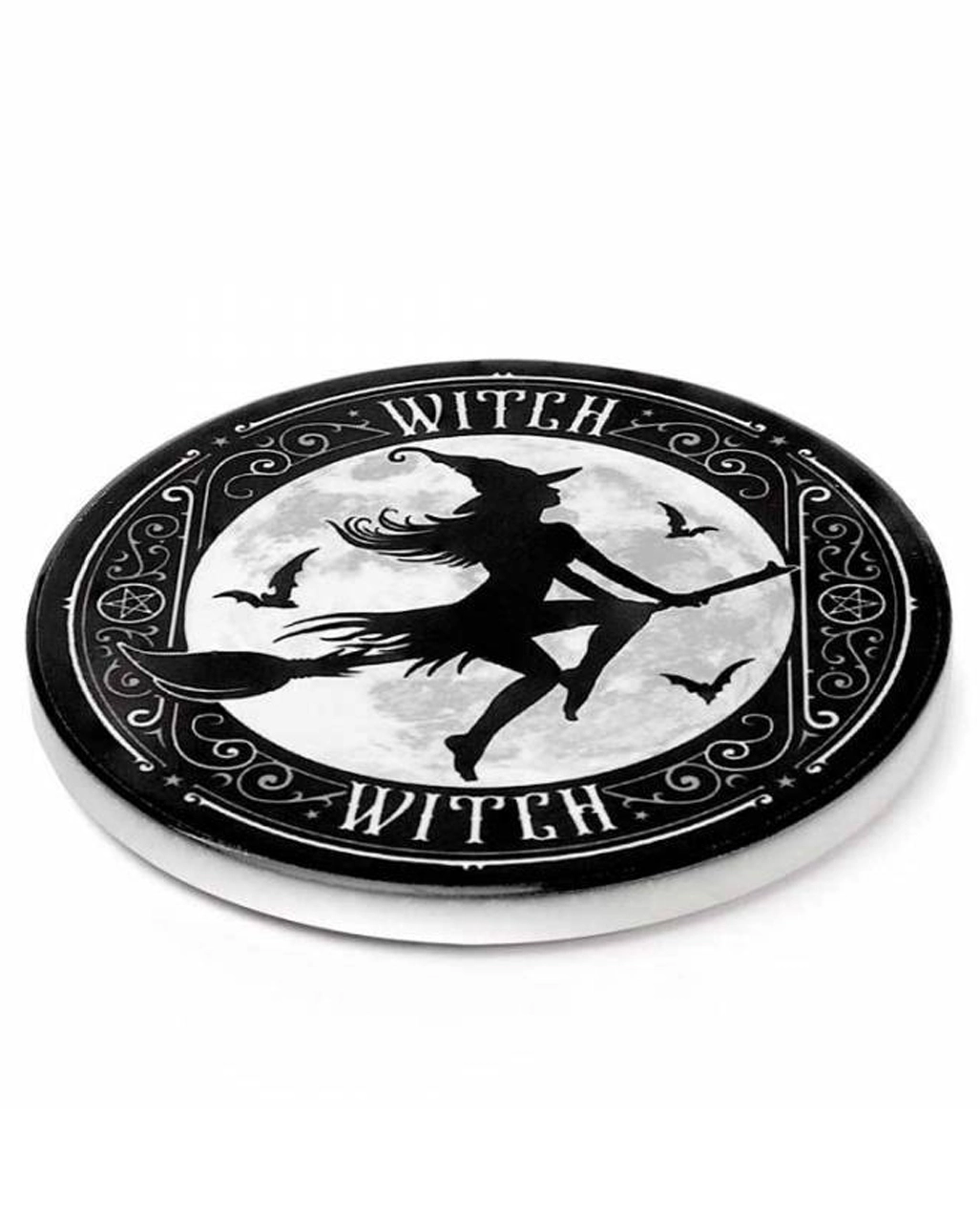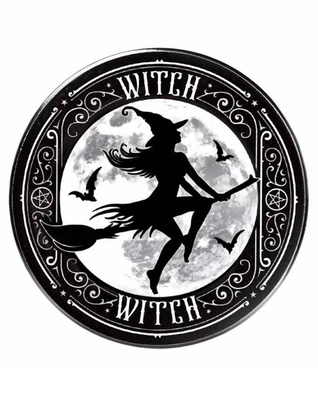 Beim Spooky Hexen Untersetzer handelt es sich um Gothic Homeware aus Keramik mit rutschfester Korkrückseite. Diese Walpurgisnacht Tischdeko ist mit original Alchemy-Kunstwerken verziert und ein dekorativer Hingucker an jedem Tisch. Dank der praktischen Anti-Rutsch-Rückseite hat der Untersetzer auf nahezu jeder Oberfläche guten Halt. Entdecke noch mehr Hexen Tischdeko und Gothic Homeware in unserem Onlineshop. Wie wäre es mit unserer Hexenkessel mit Löffel als Suppenschale