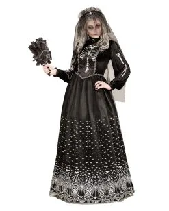 Fasching muss nicht immer mit bunten und fröhlichen Kostümen gefeiert werden. Wer es düster liebt, der wird mit unserem Tag der Toten Skelettbraut Kostüm glücklich werden. Dieses traumhafte Tag der Toten Kostüm besticht durch düstere Eleganz – perfekt, um am Faschingsumzug aus der bunten masse herauszustechen. Das schwarze Braut Kostüm besteht aus einem Halloween Kostümkleid mit Reifrock und einem dunklen Brautschleier. Mit dem passenden Dia De Los Muertos Make-up wirst du zur wunderschönen Todes-Braut, die alle Blicke auf sich zieht.