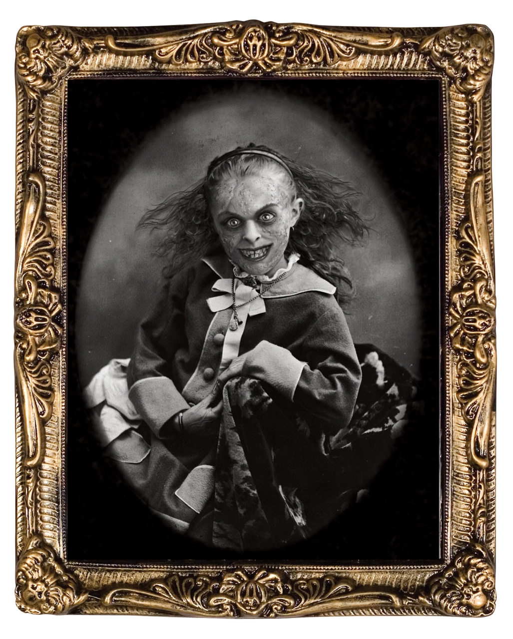 Das Zombie Mädchen Wackelbild ist ein gerahmtes Bild, das im ersten Moment ein süßes Mädchen zeigt. Durch den “Wackeleffekt” verwandelt sich das Mädchen in ein furchteinflößendes Zombie-Kind mit ekelhafter Fratze und abstehenden Haaren. Die Halloween Wanddekoration ist 33 x 38 cm groß und ideal für den Innenbereich. Das Zombie Mädchen Wackelbild ist nur eines von außergewöhnlichen Halloween Deko-Artikeln aus unserem Onlineshop. Bei uns findest du auch ein Bewegliches Wandbild Gruslige Hexe oder das unheimliche Effektbild Horror Zwillinge 38 x 51 cm